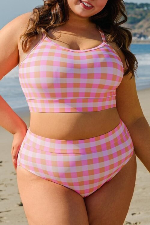 - Make A Statement In This Stylish Plaid Print Bikini Set Designed For Plus-Size Women.