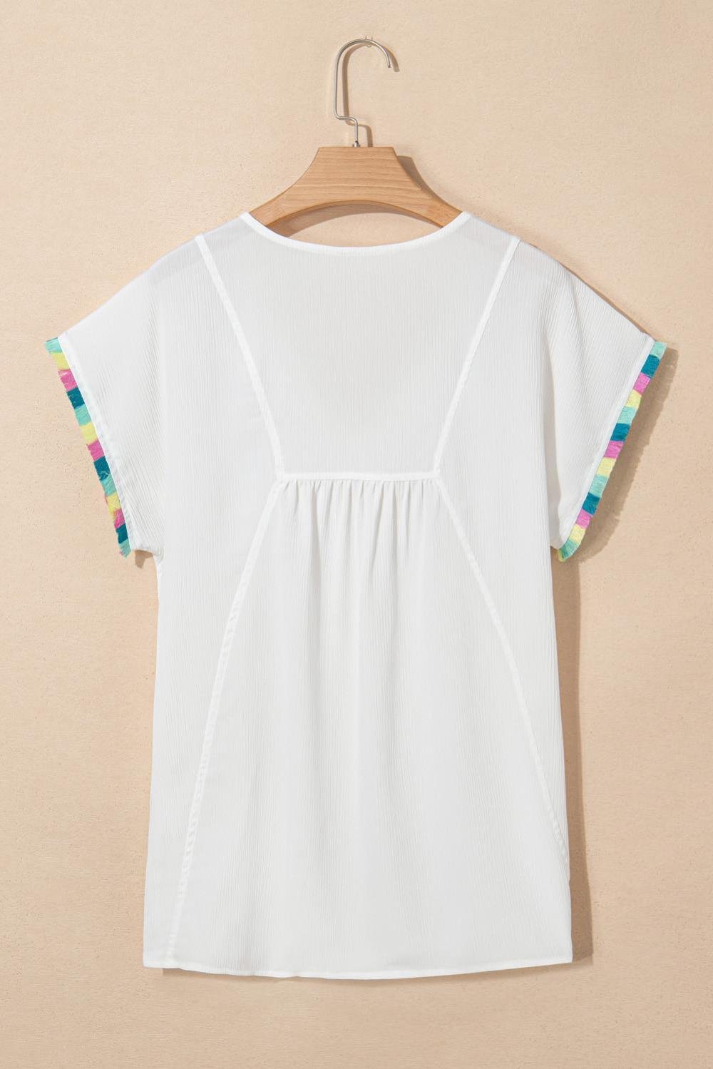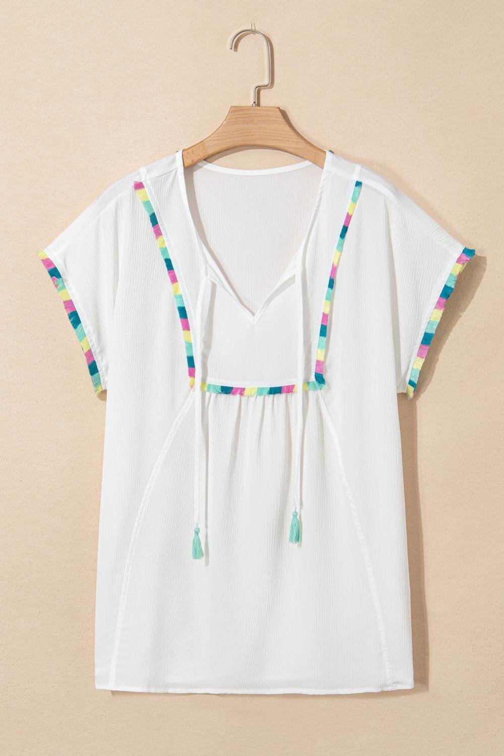 - Fringed Tassels Bring A Playful Touch To The Chic V-Neck Design.