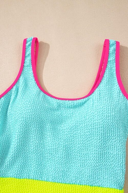 - Stand Out On The Beach With Our Colorblock One Piece Swimsuit, Featuring A Striking Combination Of Colors That Flatter All Skin Tones.