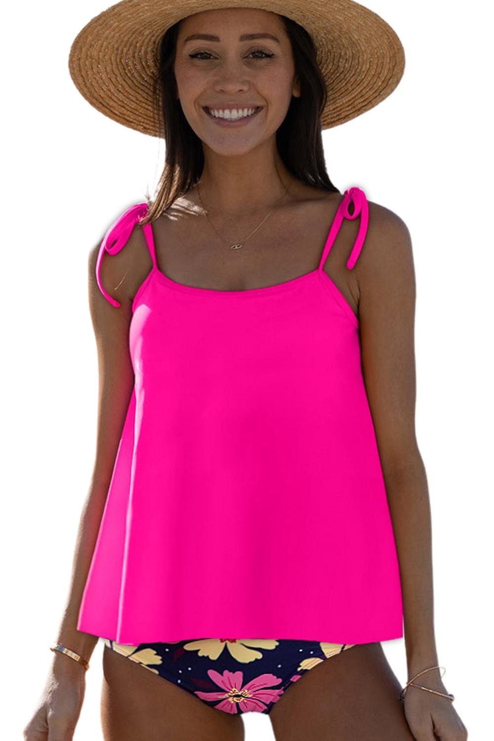 - Vibrant Rose Red Color Complements The Tankini Set, Creating A Stylish And Eye-Catching Ensemble For Poolside Lounging Or Beach Days.